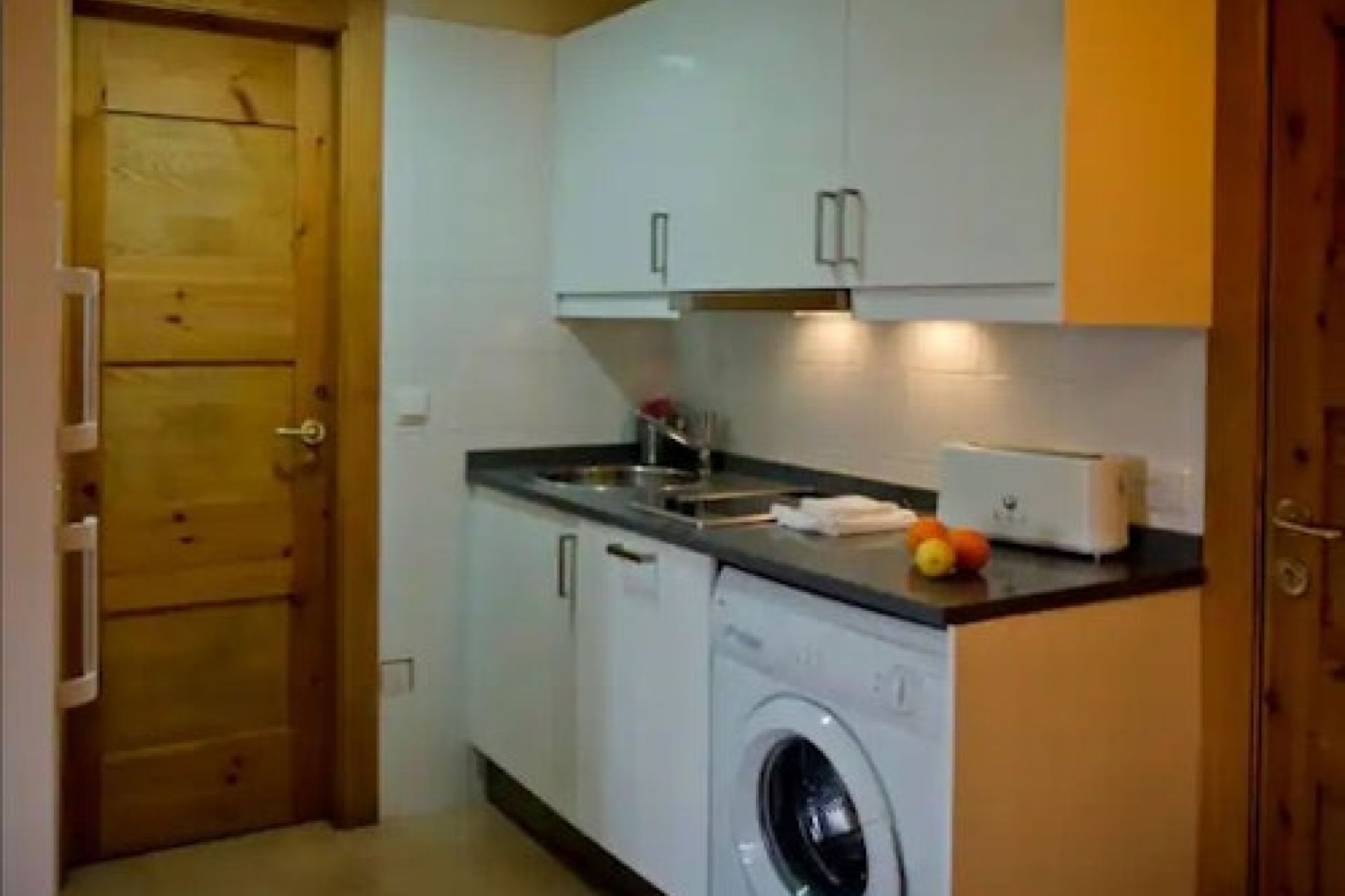 Apartamento en planta primera de una habitación con cama de matrimonio, salón cocina y baño. En el salón dispone de una sofá convertible en cama doble.